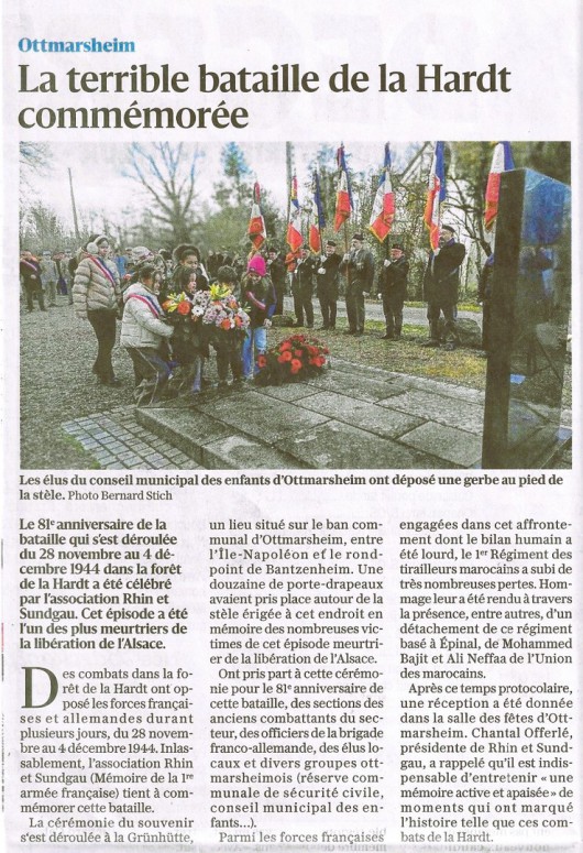 Décembre 2019 - Commémoration du 75e anniversaire de la fin des combats de la Hardt.