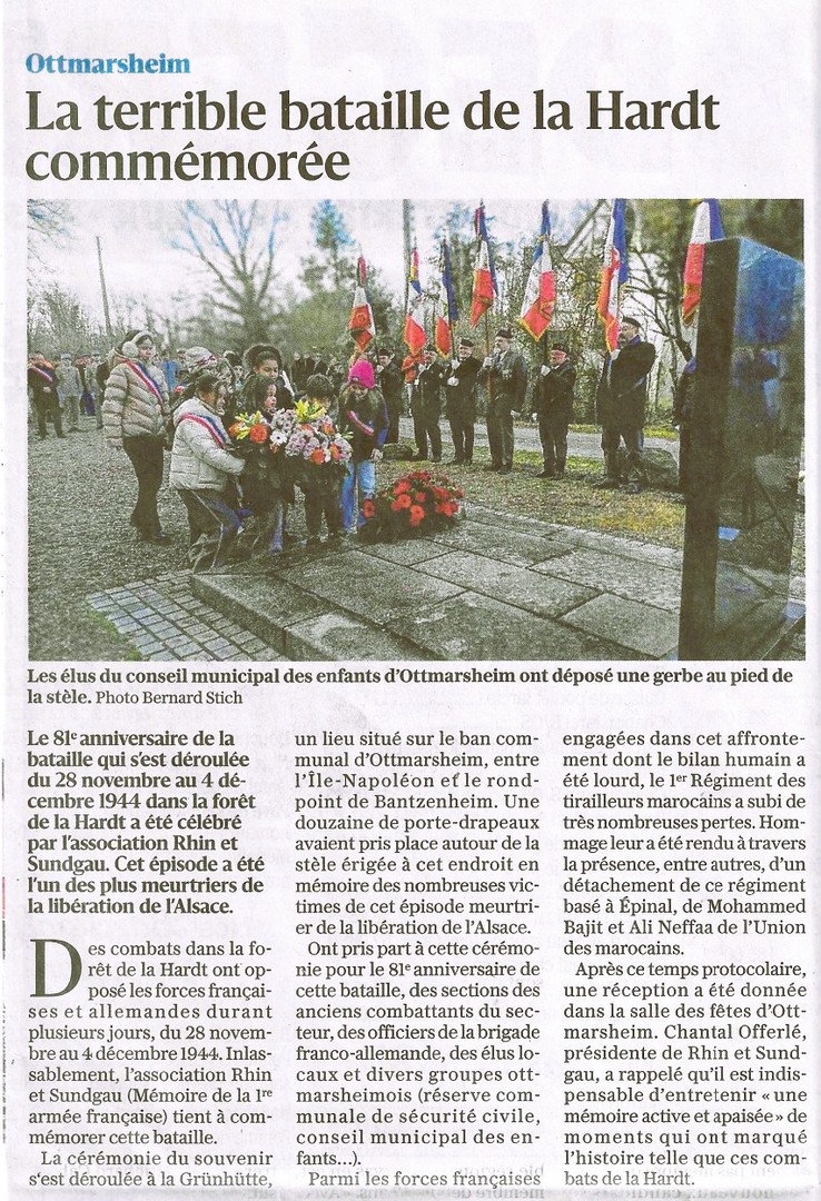 28 Novembre 2024 - Commémoration du 80e anniversaire des combats de la Hardt